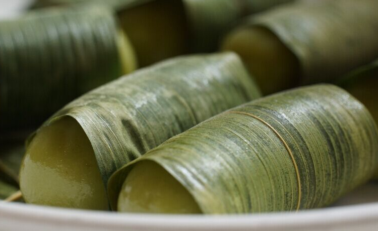用糯米细粉做皮,内用白糖、花生、核桃、芝麻等合制成心子;用粑叶包好蒸后即可食用,味道鲜美,令人回味无穷。